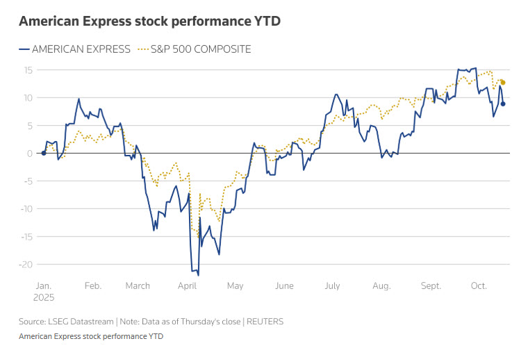 Oct 17 (Reuters) – American Express raised the lower end of its 2025 profit and revenue forecasts on Friday, as its affluent customers looked past economic uncertainty and continued spending ahead of the holiday season.