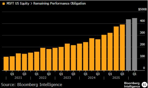Microsoft’s data-center expansion strategy keeps it ahead of rivals, supported by industry-leading AI sales and commercial remaining performance obligations (RPO) of $392 billion — up 51% from a year earlier as of Oct. 29. Management noted that Azure constant-currency growth of 39% in fiscal 1Q would have been higher if not for capacity constraints. Therefore, the capital spending ramp-up which we calculate at around $145 billion for fiscal 2026 vs. Azure sales of roughly $100 billion is backed by a spike in highly visible demand.